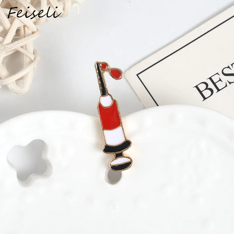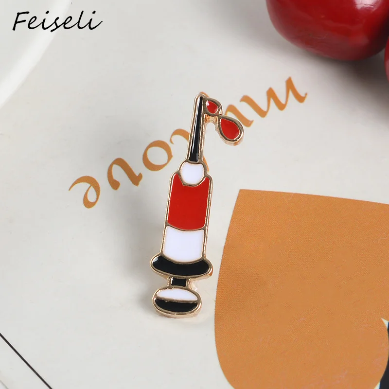 Affordable Feiseli Cartoon Enamel Medical Syringe Brooch For Doctor Nurse UNique Clothes Collar Lapel Pins Cut