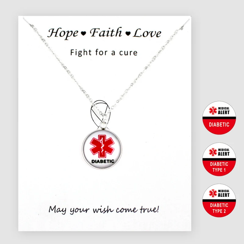Buy Diabetic Type 1 2 Medical Alert Pendants Chain Necklaces Women Men Unisex Fashion Jewelry Friend Gi | Diabetic Type 1 2 Medical Alert Pendants Chain Necklaces Hope Faith Love Women Men Unisex Fashion Jewelry Gift Drop Shipping