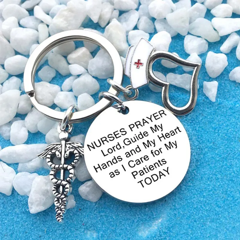 How to buy Chic Nurse Keychain Stainless Steel Doctor Nurse Cap Heart Stethoscope Keyring Nurse Jewellery Medi