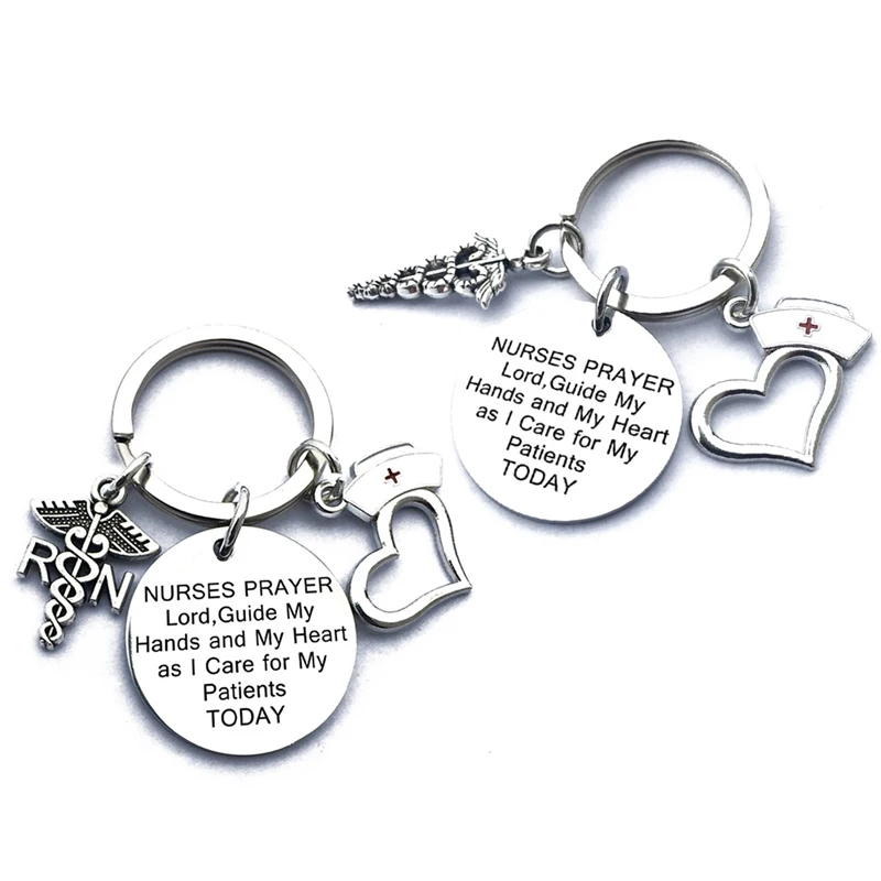 Offer Chic Nurse Keychain Stainless Steel Doctor Nurse Cap Heart Stethoscope Keyring Nurse Jewellery Medi
