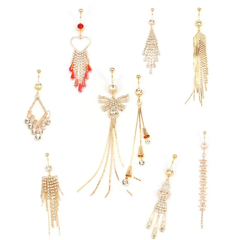 New Medical Steel Crystal Rhinestone Golden Belly Button Ring Dangle Navel Body Jewelry Piercing Tassel | 3 Colors Gold Buckle Bikini Split Swimsuit Swimwear Women 2 Piece Set Women Swimming Suit High Waist Bikini